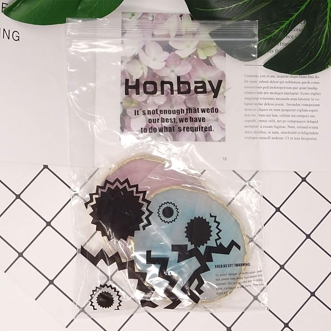 Honbay 2PCS Golden Edge Resin Nail Art Palettes Drawing Plates Manicure Display Tools for Women