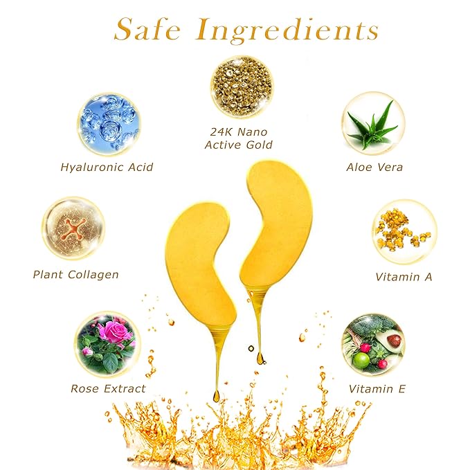 - β³ ANTI-AGING results of gel eye patches are achieved by hyaluronic acid and 24k gold extract that help to retain moisture in the epidermis, so it will not be dehydrated. Choose our gold eye patches eye mask skincare for puffy eyes for best results.