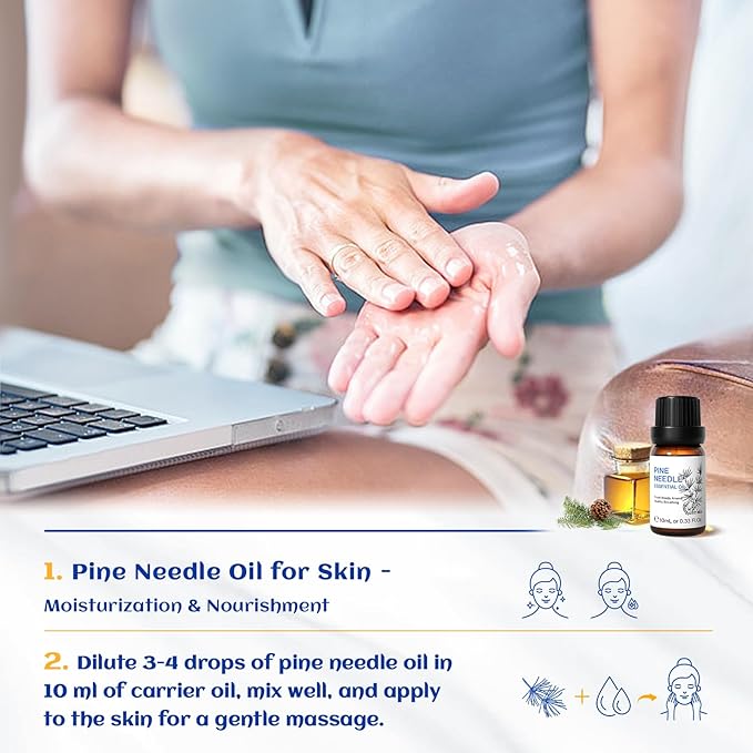 - Multi-Purpose: Pine needle essential oil has a multi-purpose natural remedy with a fresh woody and winter forest airy aroma that can help relax the mind, balancing emotions. Repairs skin imperfections and smoothes the skin