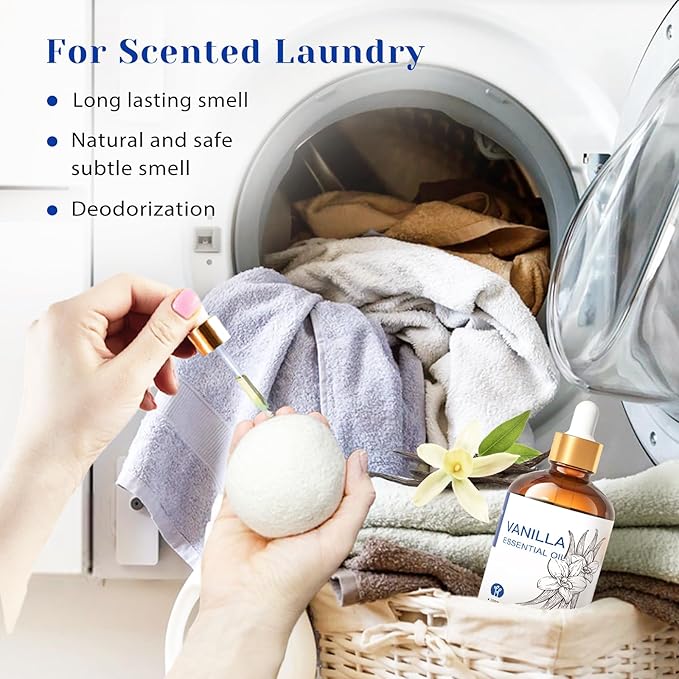 - Multiple Use Scenarios: Add 1-2 drops of vanilla essential oil when washing clothes in the washing machine to eliminate odors, commonly used in home cleaning, kitchen, shower, bathtub, toilet, sauna, spa, aromatherapy, outdoor space, car, air freshening, office, bedroom, yoga
