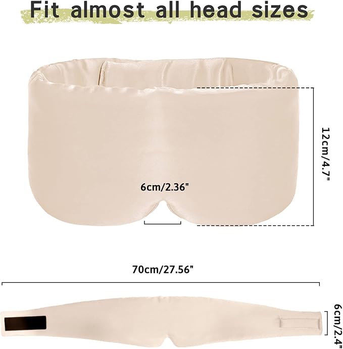 - Large Size & Adjustable: The eyemask is with Large Size to fit most head circumference and side-sleepers. You may adjust the strap to your suitable length via the Velcro, and the mask will no shift off easily. You wonโt feel any pressure on your face or your eye balls with this sleep face mask, and we believe that you will want to use it in the long term