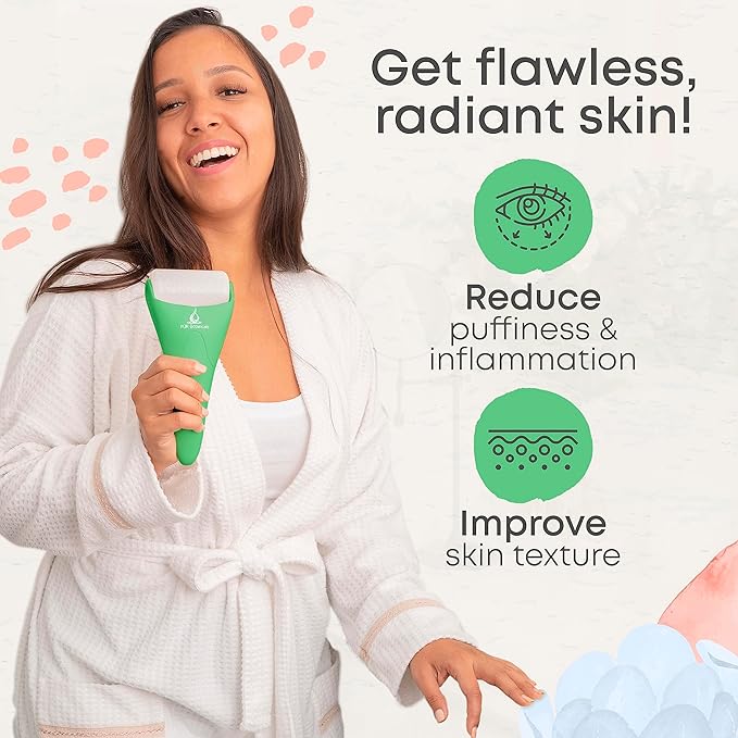 Ice Roller for Face & Eye Puffiness Relief 2 in 1 Set - Therapeutic Facial Massager for Beauty - Cooling Face Rollers for Women - Tone & Tighten Your Damaged Skin - Reduce Wrinkles