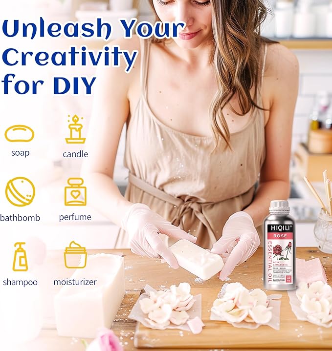 HIQILI 32 Fl Oz Rose Essential Oil, Huge Value Size Undiluted Rose Oil for Face, Skin, Diffuser, Hair
