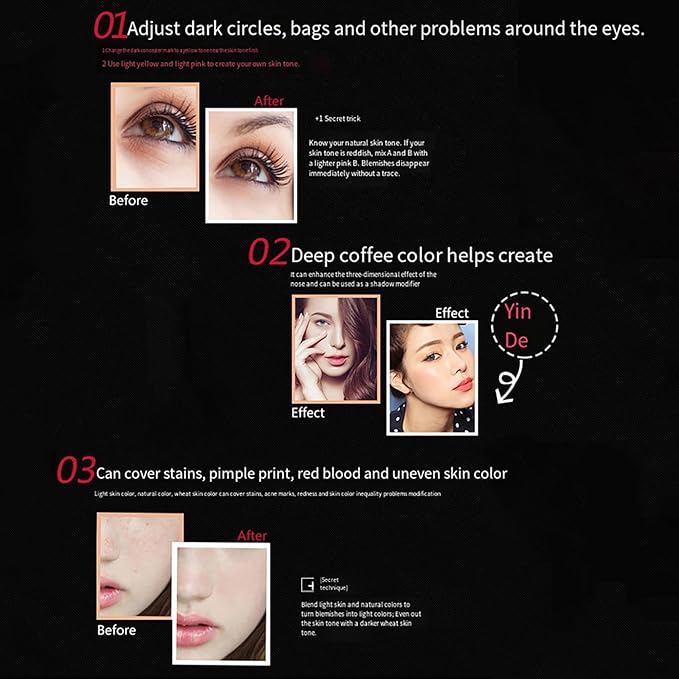 - 3D Contour Artist Cream Makeup Palette - Our color correcting palette expertly chosen to work together to conceal problem areas, fix the flaws of your face, helps conceal trouble spots; Create the illusion of higher cheekbones, a smaller forehead, a softer jawline or a slimmer nose while drawing light to the areas you want to highlight.
