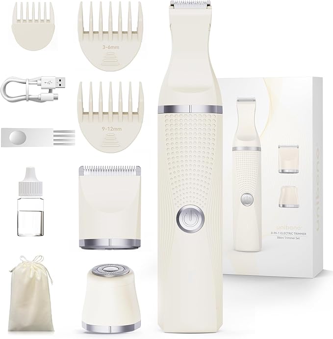 - 【3-IN-1 Lady Razor For Whole body Hair Removal】This electric women razor set is coming with three different detachable blade heads,including floating foil shaver head,standard trimmer head,bikini trimmer head,which can multi-task your whole body hair removal in farms,armpits,legs,bikini area etc. The bikini trimmer head also comes with a 3mm guard which can make you a quick and precise bikini line shaping without nicks and irritation.
