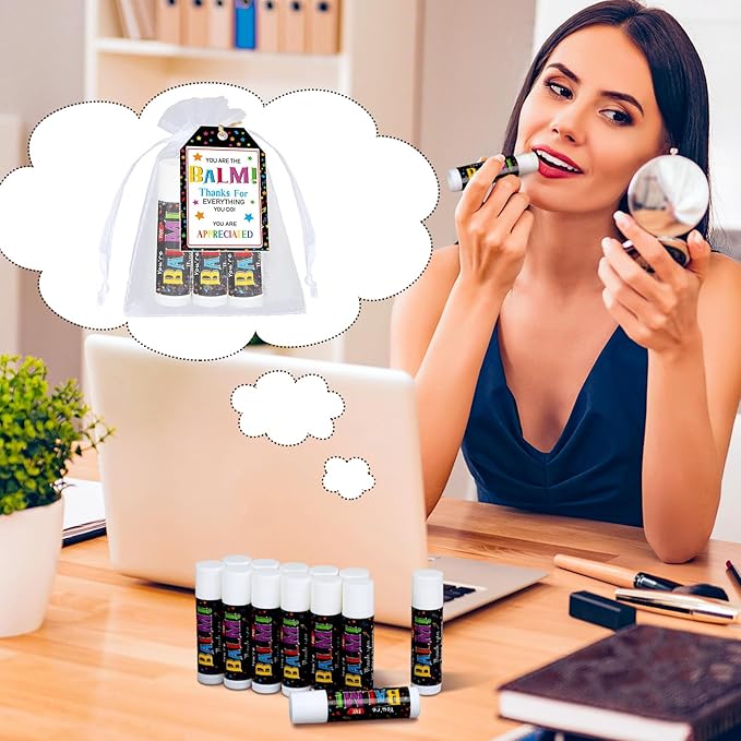 - Thoughtful Appreciation Gifts Design: these appreciation gifts bulk lip balms come with the words [thanks for everything you do], and cute pattern; Matching with white organza bags and thank you tags, making them a classy and heartfelt way to show your gratitude to your coworkers, staffs, women, employee, men and friends