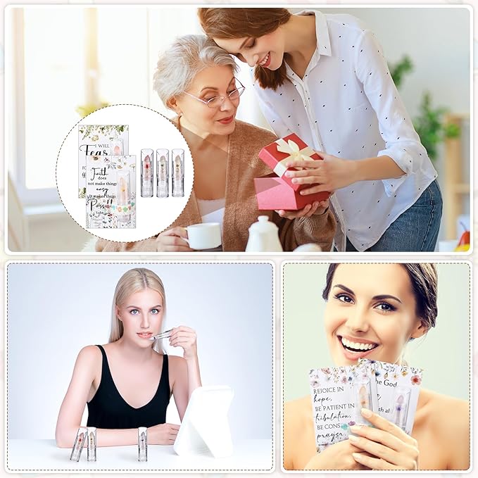 - Christian Lip Balm Set: the package includes not just 12 lip balms with flowers but also 12 inspirational quote cards and 1 roll tape, these elements combined make this an ideal and complete gift set, there are different styles to create different collocations