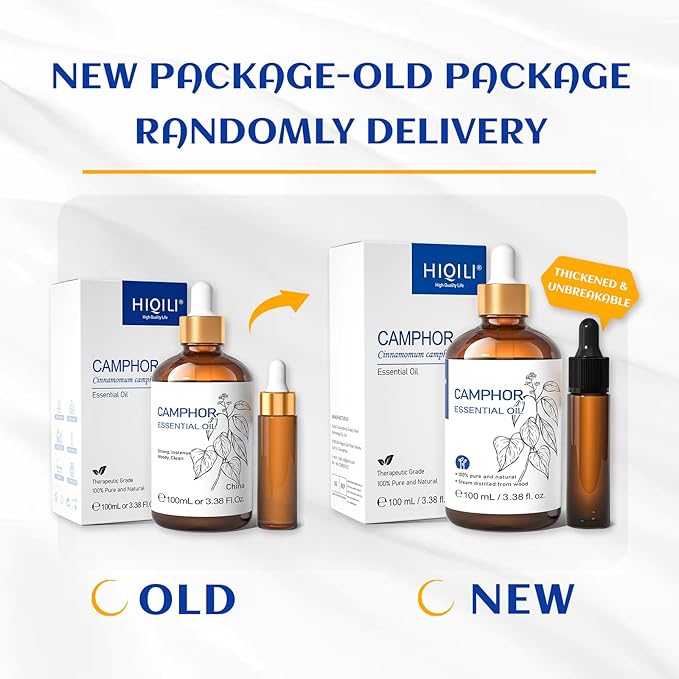 HIQILI 100ML Camphor Essential Oil Pure, 100% Undiluted for Skin, Diffuser, Aromatherapy - 3.38 Fl Oz