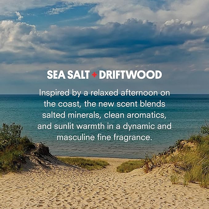 - SEA SALT + DRIFTWOOD: Opens with clean, aromatic notes of mandarin, cardamom, blue sage and lavender surrounded by the freshness of salted ocean air. Coastal greens combine with sea salt, driftwood and sun-bleached cedar for a scent that is dynamic, fresh and easygoing.