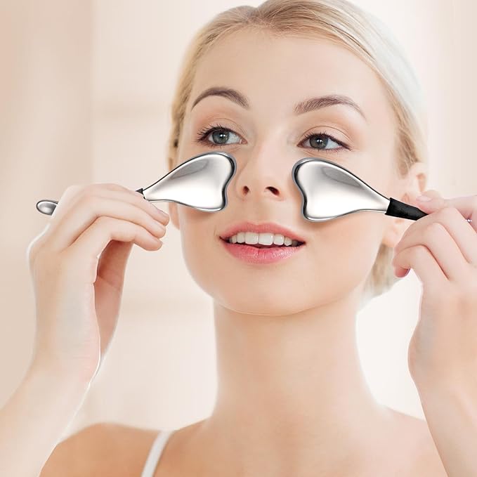 3-in-1 Cryo Gua Sha Facial Tools, Ice Roller Globes for Women Face and Eyes Massager, Unbreakable Stainless Steel Face Sculpting Skin Care Tools, Esthetician Supplies with Carry Case