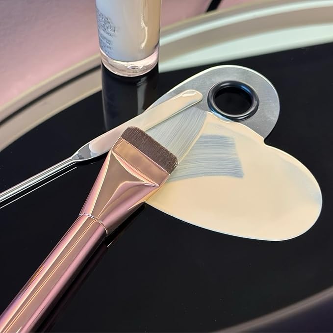 - Heart-Shaped Stainless Steel Makeup Mixing Palette: This elegant stainless steel makeup mixing palette features a stylish heart shape that’s more than just cute — it’s designed for hygienic blending and custom shade creation. Ideal for mixing foundation, creams, and liquids outside the bottle, it gives you full control over product amounts and consistency. Durable, easy to clean, and essential for both pros and everyday beauty routines, this foundation mixing tray is a must-have in any make up artist essentials kit.