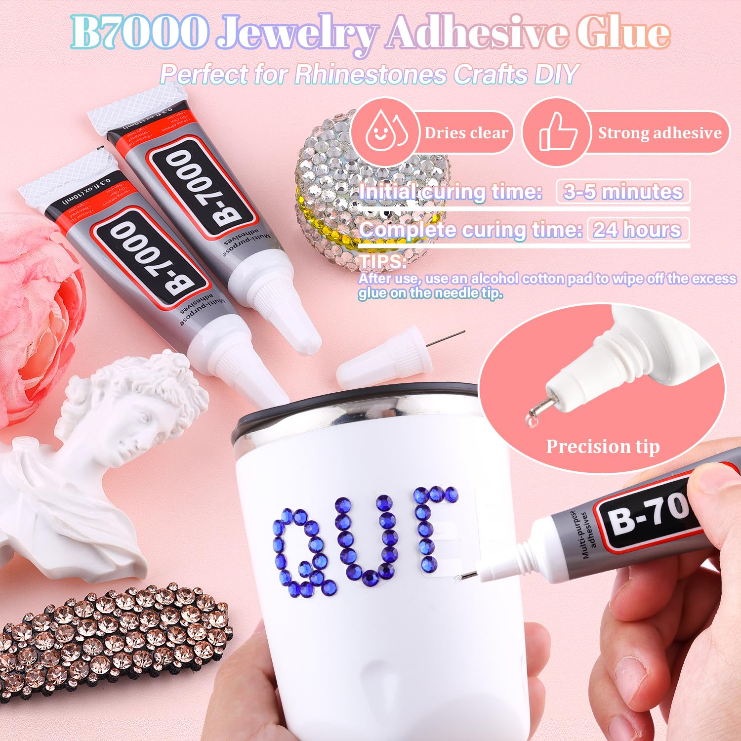 - STRONG B7000 GLUE FOR GEMS β B7000 glue offers strong, long-lasting adhesion and dries clear, making it perfect for securing gemstones and other embellishments. The precision needle tip allows for controlled, mess-free application. For best results, clean the needle with an alcohol wipe after each use to prevent clogging and ensure smooth flow every time.