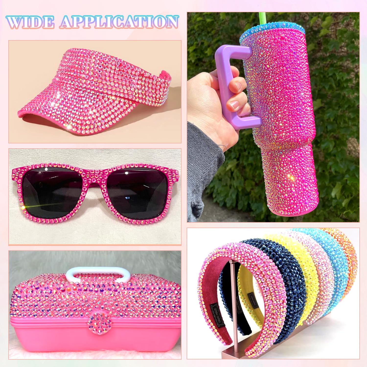 - PACKAGE CONTENT β This all-in-one bedazzler kit includes everything you need to start creating dazzling designs: 1 box of Hot Pink AB rhinestones with 24 grids (approx. 30,000 pcs of bedazzling rhinestones assorted size SS6/10/16/20/30 ), 1 precision tweezers, 1 pickup pen for handling small gems, and 3 tubes of B7000 jewelry glue for secure application.