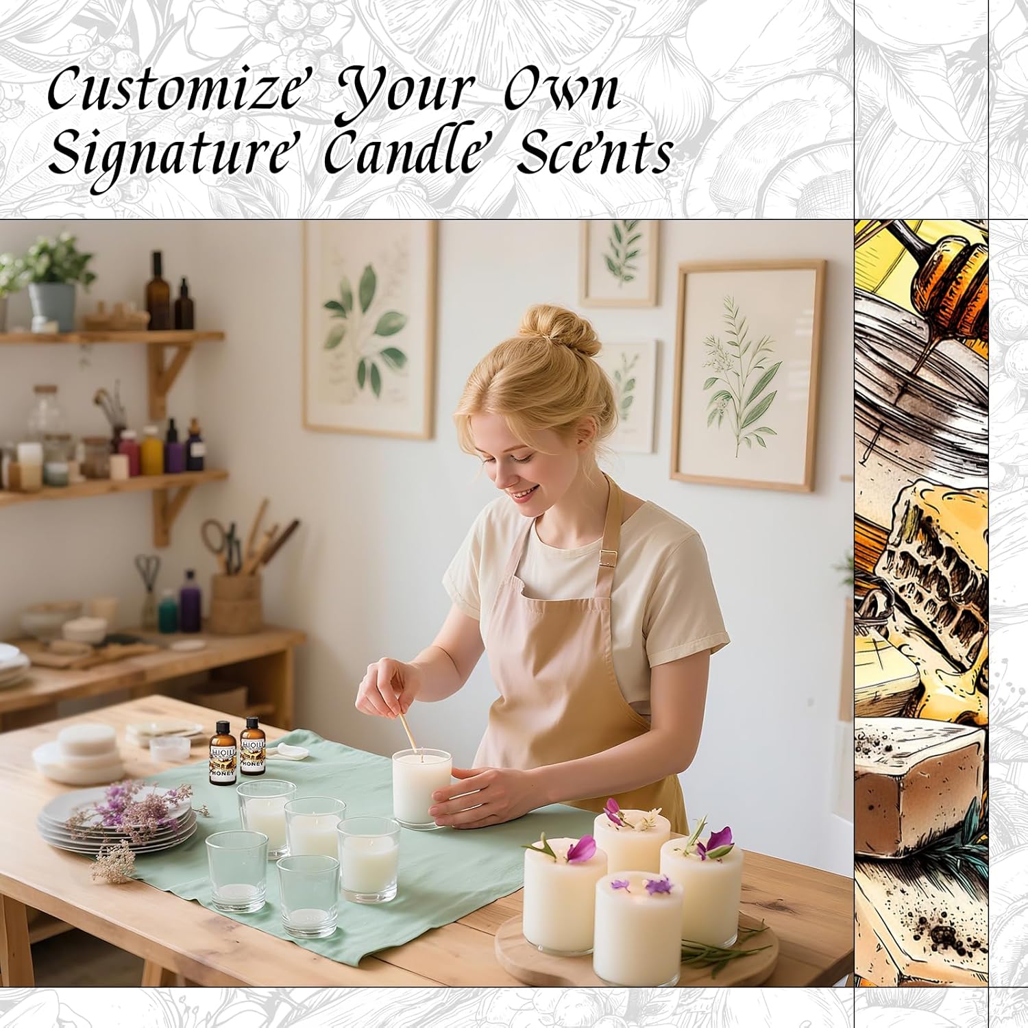 - Golden Honey Scent: Sweet, velvety honey aroma reminiscent of freshly gathered nectar. The rich fragrance offers a comforting and indulgent olfactory experience