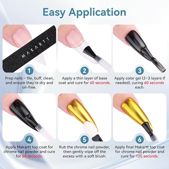 - Easy to Use β UV/LED Lamp Required: Apply and cure in minutes! Works with all brands of gel polish and chrome powder. Great for beginners and pros alike
